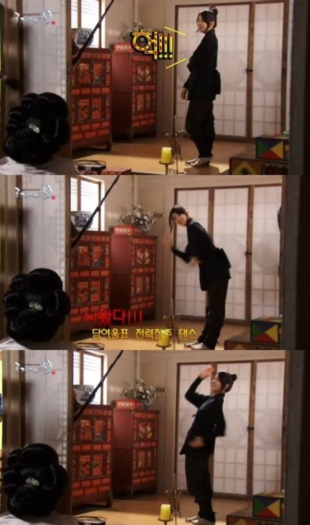 이에 수지는 당황한 표정을 지었다. 그러나 이내 미소를 지으며 양팔을 흔들면서 전력 질주하는 듯한 자세로 '앙증댄스'를 선보여 눈길을 끌었다.