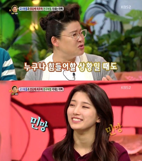 일을 하다 보면 한 번씩 지각도 하게 될텐데 아무리 힘들어도 지각 한 번 한 적이 없다. 짜증도 한 번 안 낸다"라며 수지를 칭찬했다.