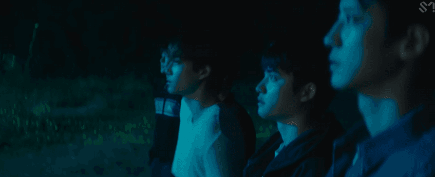 각 멤버들의 눈에 모인 E X O 로고로 멤버들이 다시금 엑소라는 팀으로 뭉치기를 결의했다는 걸 알 수 있음