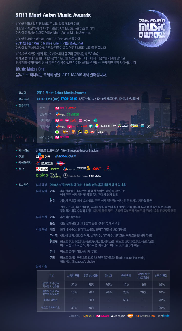 29일(화), 2011 Mnet Asian Music Awards in Singapore 개최