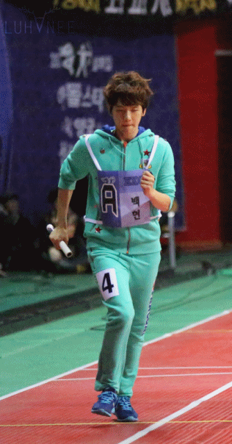 너징 쫄래쫄래 백현이 옆에 서서 이제 곧 나올 타오의 높이 뛰기를 기다리고 있음.