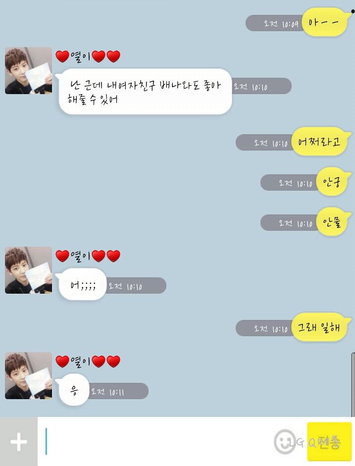 하여튼 그 모습 보고ㅋㅋㅋㅋㅋ바로 ㅋㅋㅋㅋ거리면서 너 존나 쪼갠다곸ㅋㅋㅋㅋ톡하니깐 박찬열